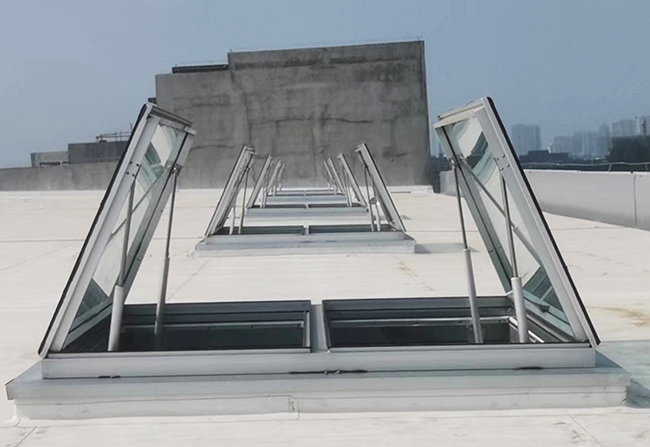 電動(dòng)排煙天窗在工業(yè)廠房中起著重要的作用。它不僅可以采光,節(jié)約電能,而且能通風(fēng)、排熱、排塵和有害氣體,降低溫度和噪音,改善工人的工作環(huán)境。其消防排煙功能尤為重要。一旦發(fā)生火災(zāi),可為廠內(nèi)人員提供無(wú)煙逃生通道,有效延長(zhǎng)救援安全時(shí)間。