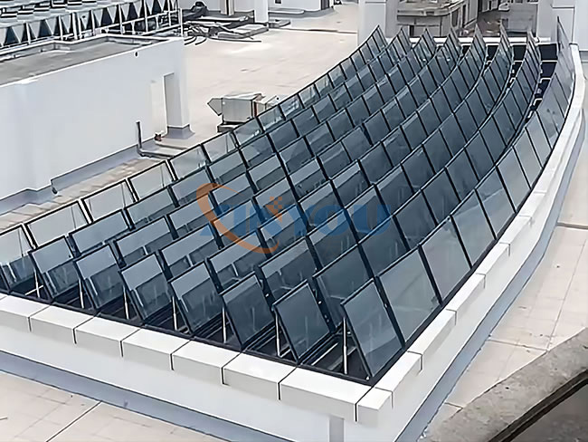 □天窗啟閉易群組控制,每組天窗數(shù)根據(jù)天窗數(shù)量及控制距離決定。其***開啟角度為70°。