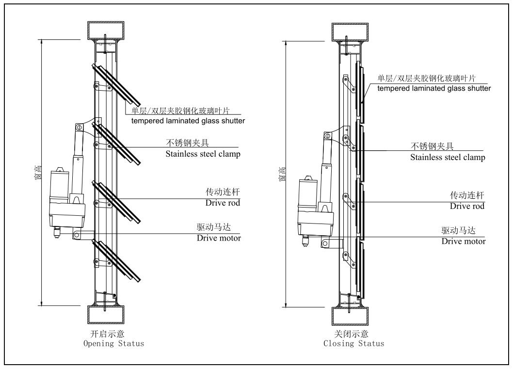 葉片規格:寬為100、160、200、300mm等玻璃百葉窗可選擇,或可根據客戶要求訂購。
