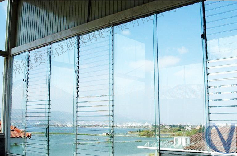 Brand new glass louvre with sunshade, decorate, natural visual function. It has best transparency(made up of transparent or ground glass), can bring visual effect. Glass louvre can instead of glass curtain wall, open and close freely and keep crystal clear.